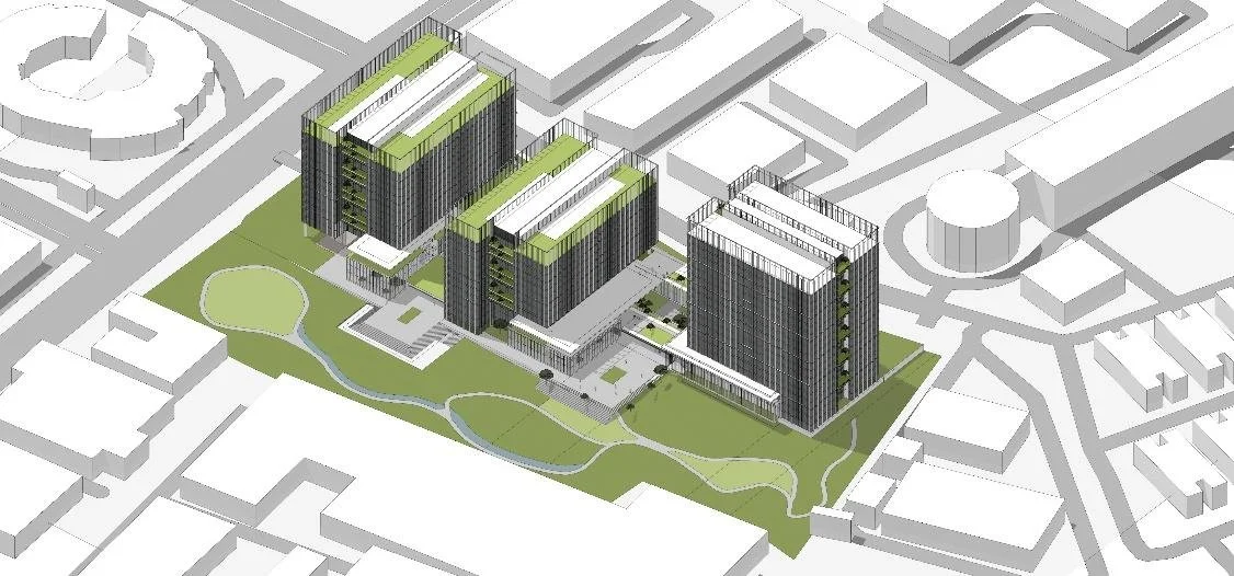 This project aspires to harmonize technological innovation with the calming presence of nature, creating a workplace that elevates both performance and wellbeing. Envisioned as three modern office towers set within a generous site, the development preserves substantial green space while advancing a forward-thinking business environment rooted in sustainability and human experience.