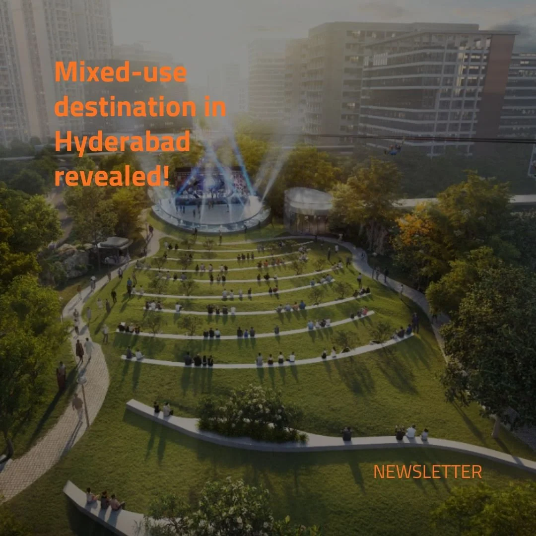 The landmark mixed-use urban destination in Hyderabad is anchored by a linear central park that stitches together retail, leisure, and public space within a dense city context.